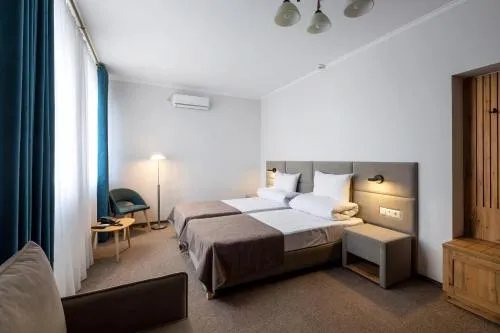 Die Gästebewertungen des 'Stanislaviv' heben eine durchgängige Wertschätzung für die Geräumigkeit und den Komfort der Zimmer hervor. Mehrere Bewertungen erwähnen, dass die Zimmer groß sind und über angemessene Annehmlichkeiten wie Wasserkocher, Haartrockner und bequeme Betten verfügen. Die Sauberkeit sticht als ein deutlicher Pluspunkt hervor, wobei viele Gäste anmerken, dass die Zimmer beim Einchecken sauber waren und eine ordentliche Atmosphäre herrschte. Die Zimmer werden als gemütlich und modern mit gepflegten Interieurs und gutem Zustand der Möbel beschrieben. Einige spezifische Merkmale wie schneeweiße Bettwäsche, mit USB-Anschlüssen ausgestattete Steckdosen und Einweg-Hausschuhe tragen zum Komfort bei.