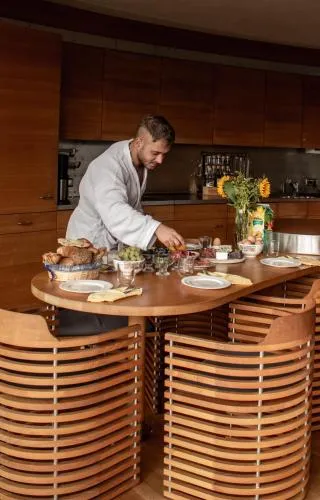 Das Turm Chalet bietet kostenlose Privatparkplätze vor Ort. Eine Tiefgarage ist auf Anfrage ebenfalls verfügbar und bietet eine alternative überdachte Parkmöglichkeit, obwohl die Plätze begrenzt sein können.