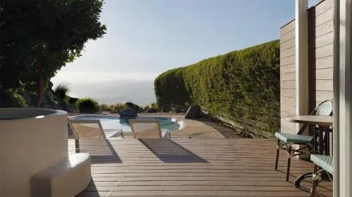 Dieses Hotel bietet einen privaten beheizten Pool, der einzigartig in den Berg integriert ist, ergänzt durch einen Whirlpool auf einer überdachten Veranda, die klare Ausblicke auf das Meer/den See bietet. Gäste erhalten außerdem kostenlose Getränke, was das luxuriöse und private Erlebnis verstärkt.