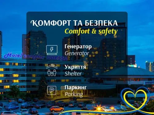 Der Hotelkomplex Odessa umfasst ein Drei-Sterne-Businesshotel, einen Bankettsaal und einen Konzertsaal. Er verfügt über einen Bankettsaal mit 7 Sälen für bis zu 600 Personen und einen Konzertsaal für bis zu 1000 Personen. Das Hotel bietet außerdem 175 Zimmer, ein Restaurant mit Sommerterrasse, ein Fitnesscenter und Parkplätze.