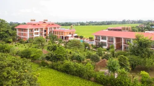 Dieses Resort liegt in der Nähe des Chitwan-Nationalparks und bietet eine familienfreundliche Umgebung mit verschiedenen Aktivitäten. Die Lage ermöglicht einfachen Zugang zu Dschungelsafaris und Naturwanderungen, was Familien sowohl Abenteuer als auch Entspannung bietet.