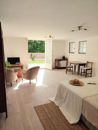 Zimmer mit Queensize-Bett und GartenblickDas geräumige Doppelzimmer verfügt über einen eigenen Eingang, Tee- und Kaffeezubehör, eine Terrasse mit Gartenblick sowie ein eigenes Bad mit Dusche. In der Wohneinheit befindet sich 1 Bett.